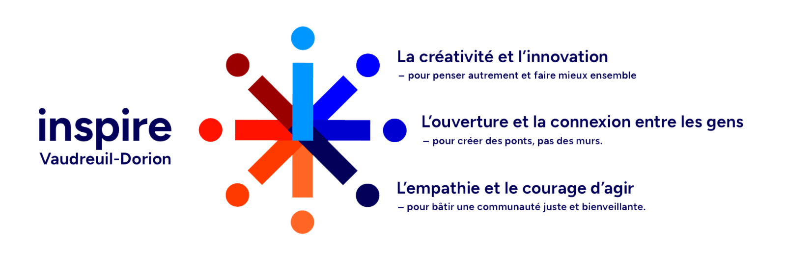 Notre mission est de renforcer le tissu social par une gouvernance transparente, inclusive et participative. Inspire Vaudreuil-Dorion veut s’appuyer sur l’innovation pour offrir des solutions concrètes qui améliorent la qualité de vie des gens de notre communauté, tout en s’assurant d’une gestion responsable de ses ressources collectives.